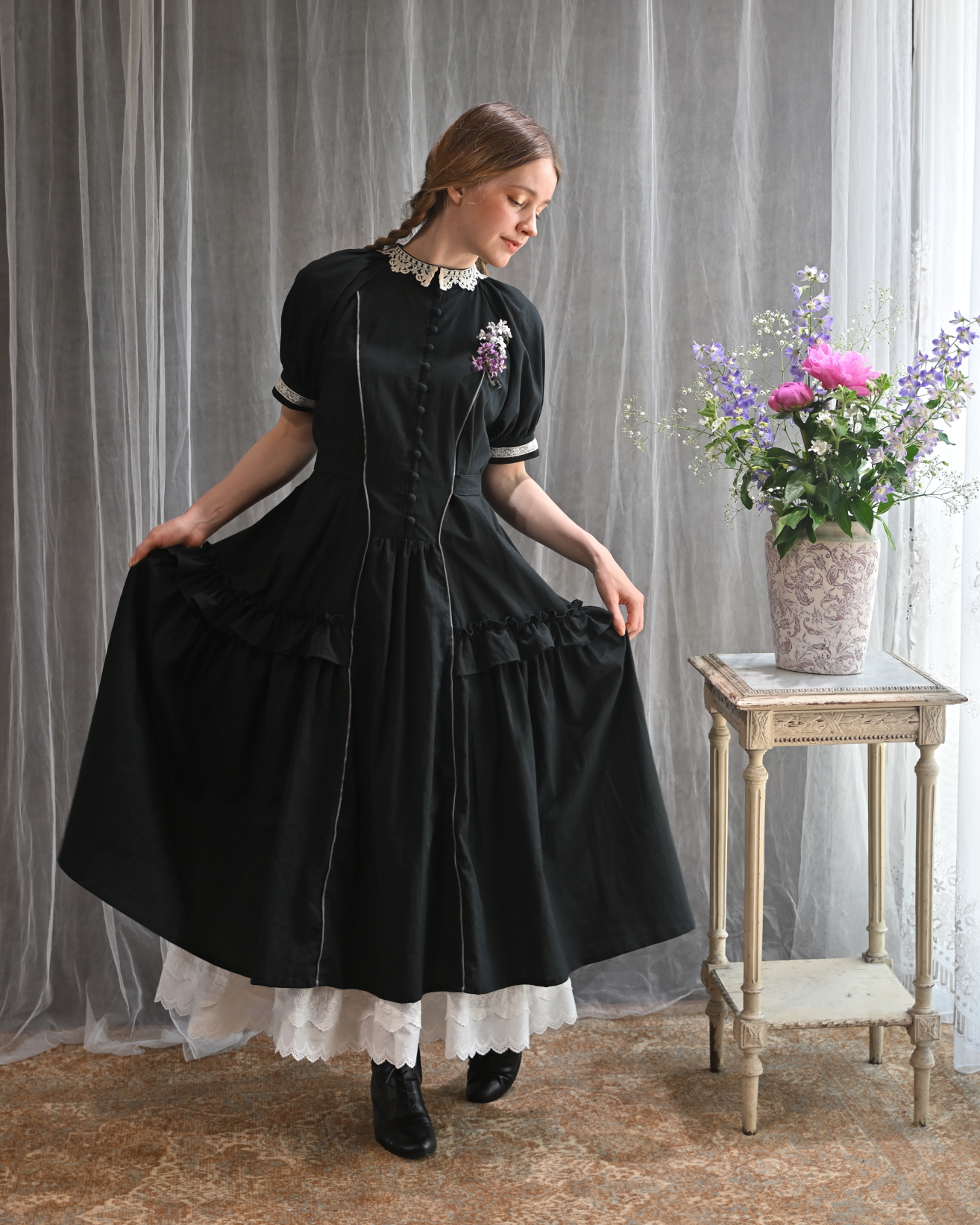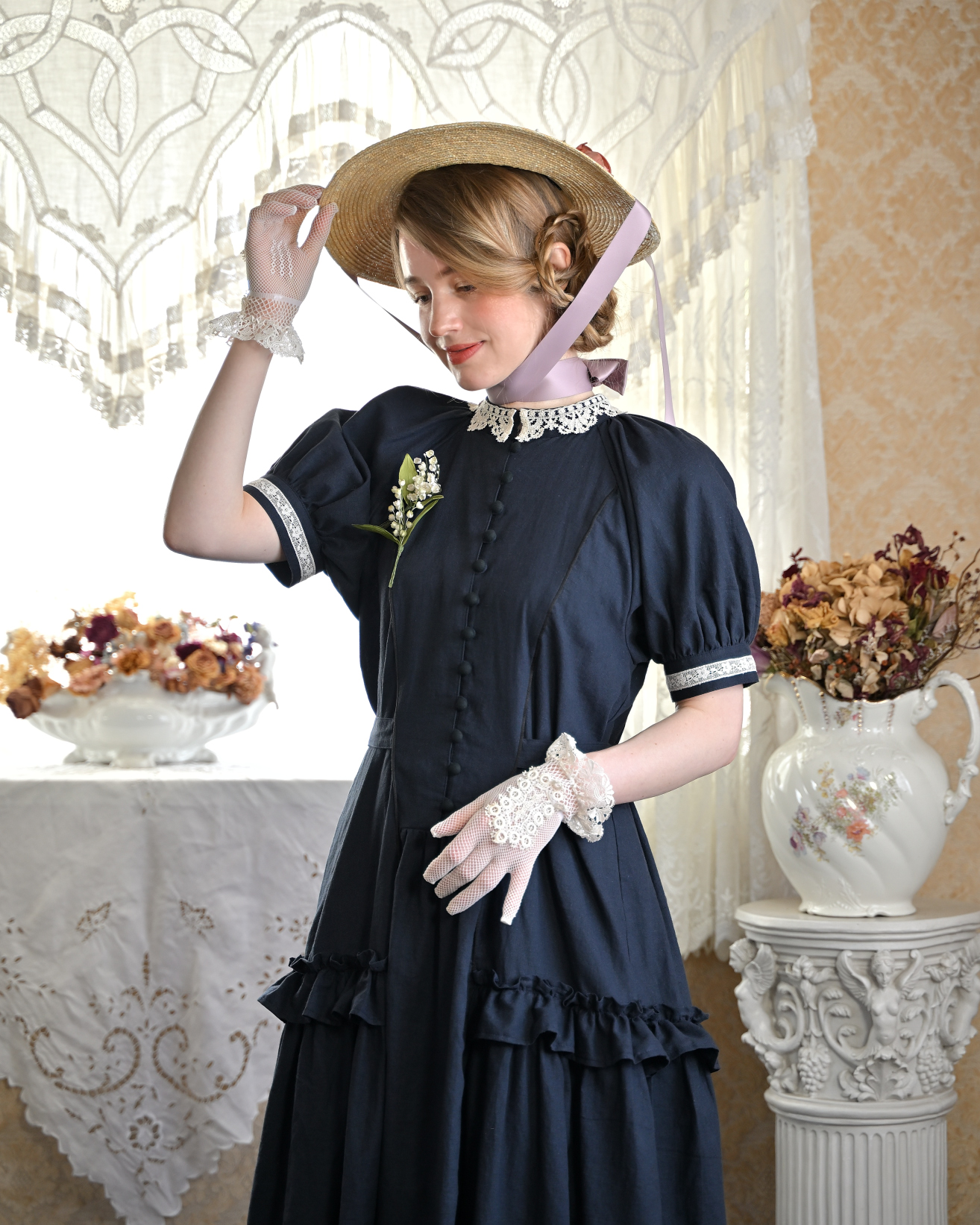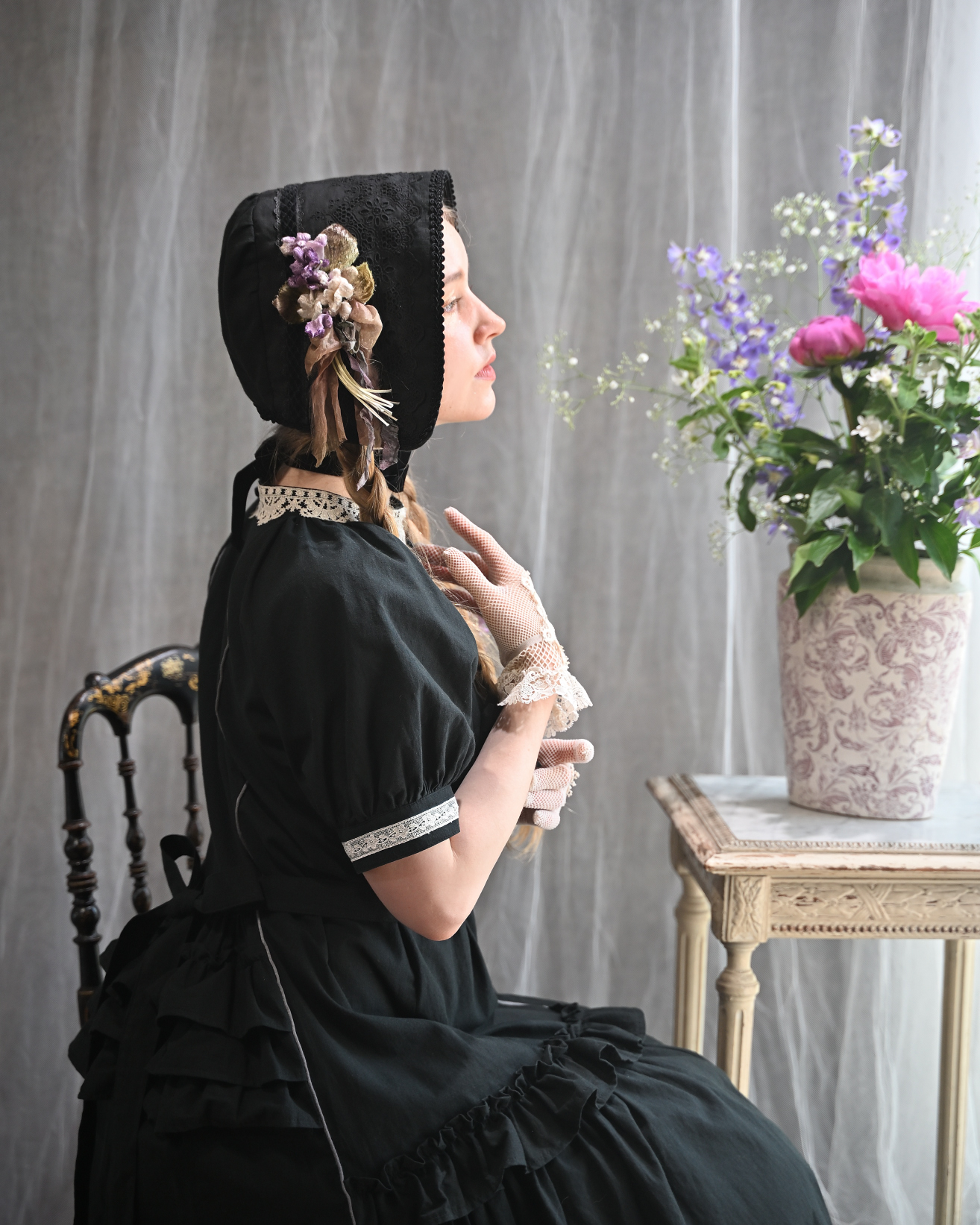 [model]Ariana SERAPHIM(アネモネのドレス/リリーペチコート/パストラルボンネット), Atelier Ophelia(ベルジェールハット) etoile.d.amour(お花のカメオブローチ/蜥蜴のアンティークフレンチジェットブレスレット), nico handwork items(コサージュ) Pink Rosetta(コサージュ), カンカン帽(私物/非買)